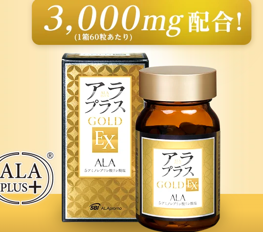 アラプラスゴールドEXは、年齢を重ねるにつれて低下しがちな「元気」「活力」「健康維持」をサポートするために開発されたサプリメントです。健康成分として注目されている5-アミノレブリン酸(ALA)を主成分とし、体内でのエネルギー産生を支える働きが期待されています。日々忙しく過ごす方、年齢に負けない体づくりを目指す方に向けた、毎日の習慣として続けやすい製品です。